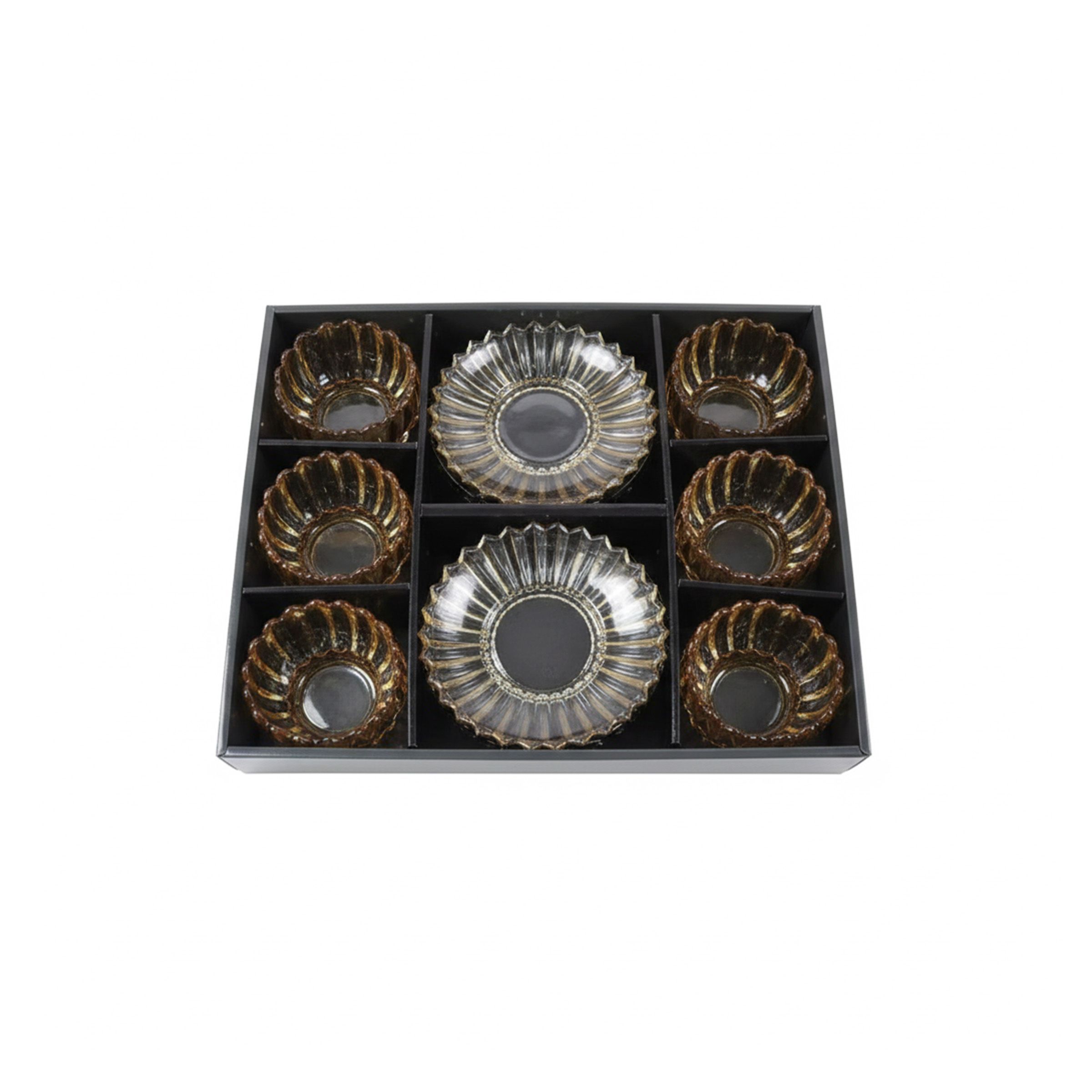 • Glass Ice Cream Bowl & Saucer 6 Set Amber JX-12040G