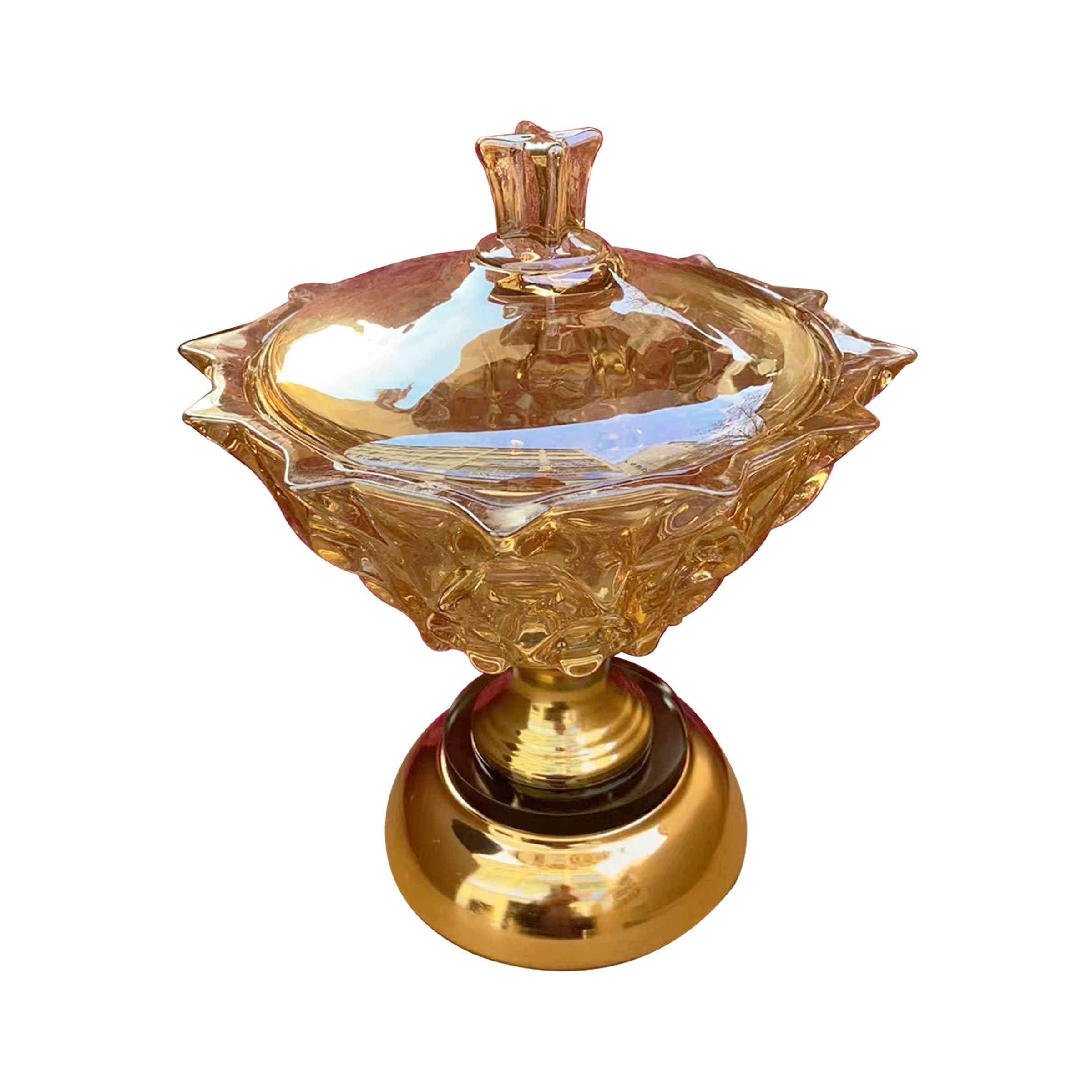 Glass Candy Bowl with Lid Amber 19x27cm(7.48×10.63inch) 606