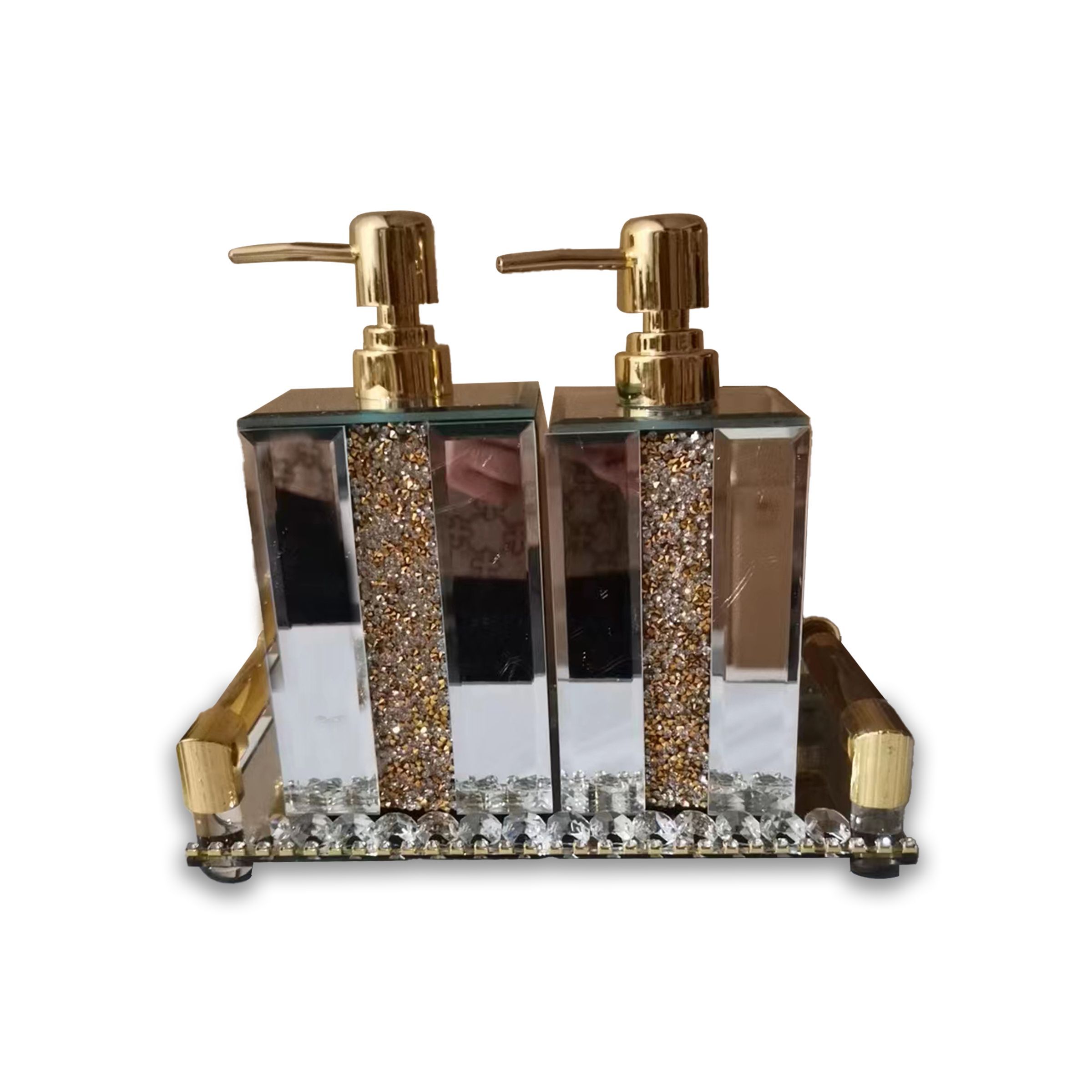 • Soap Bottleset 2Sets (M+L) Gold With Tray 475-1