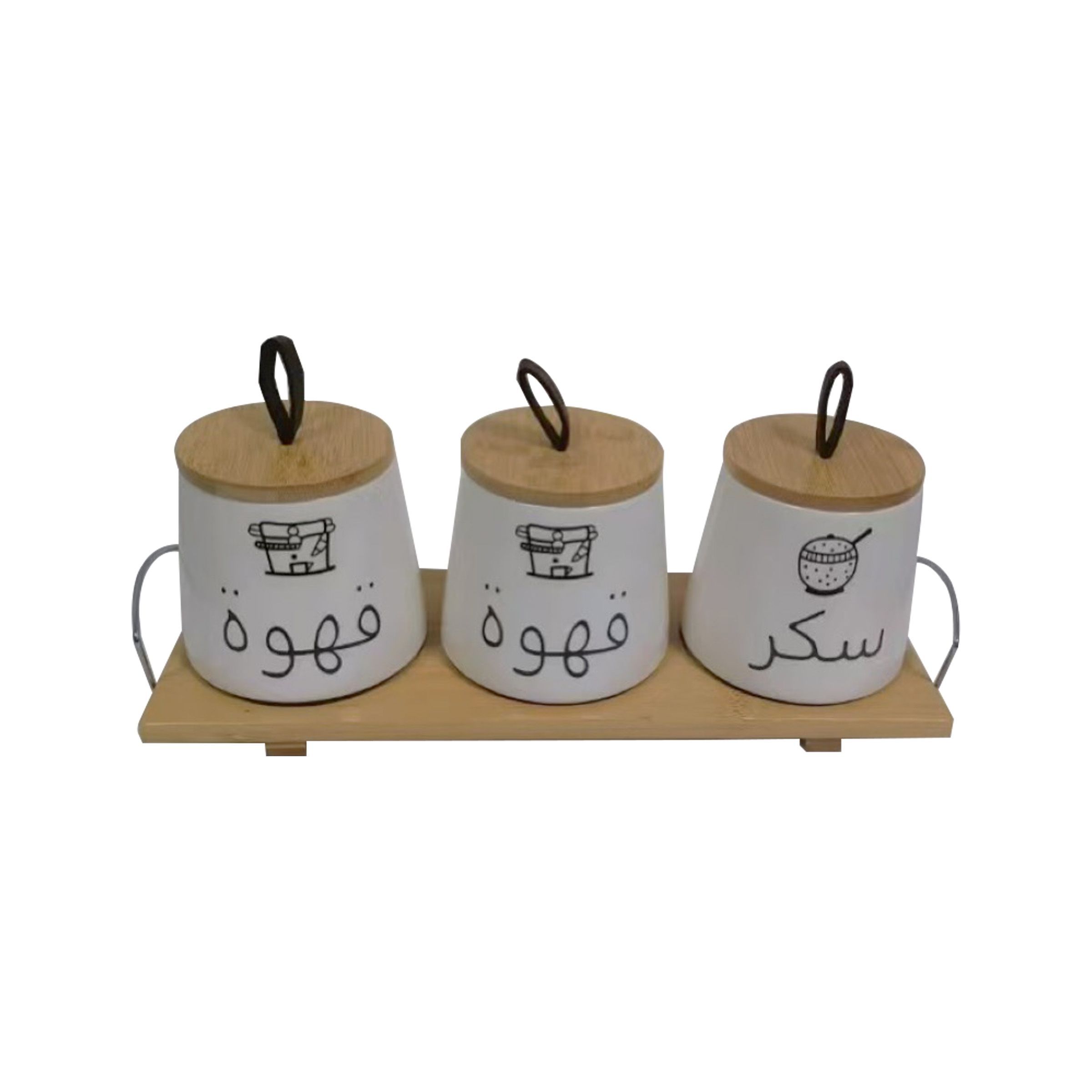 • Spice Jar 4 Set Tea/Coffee/Sugar/Tray Arabic CM-JS4A