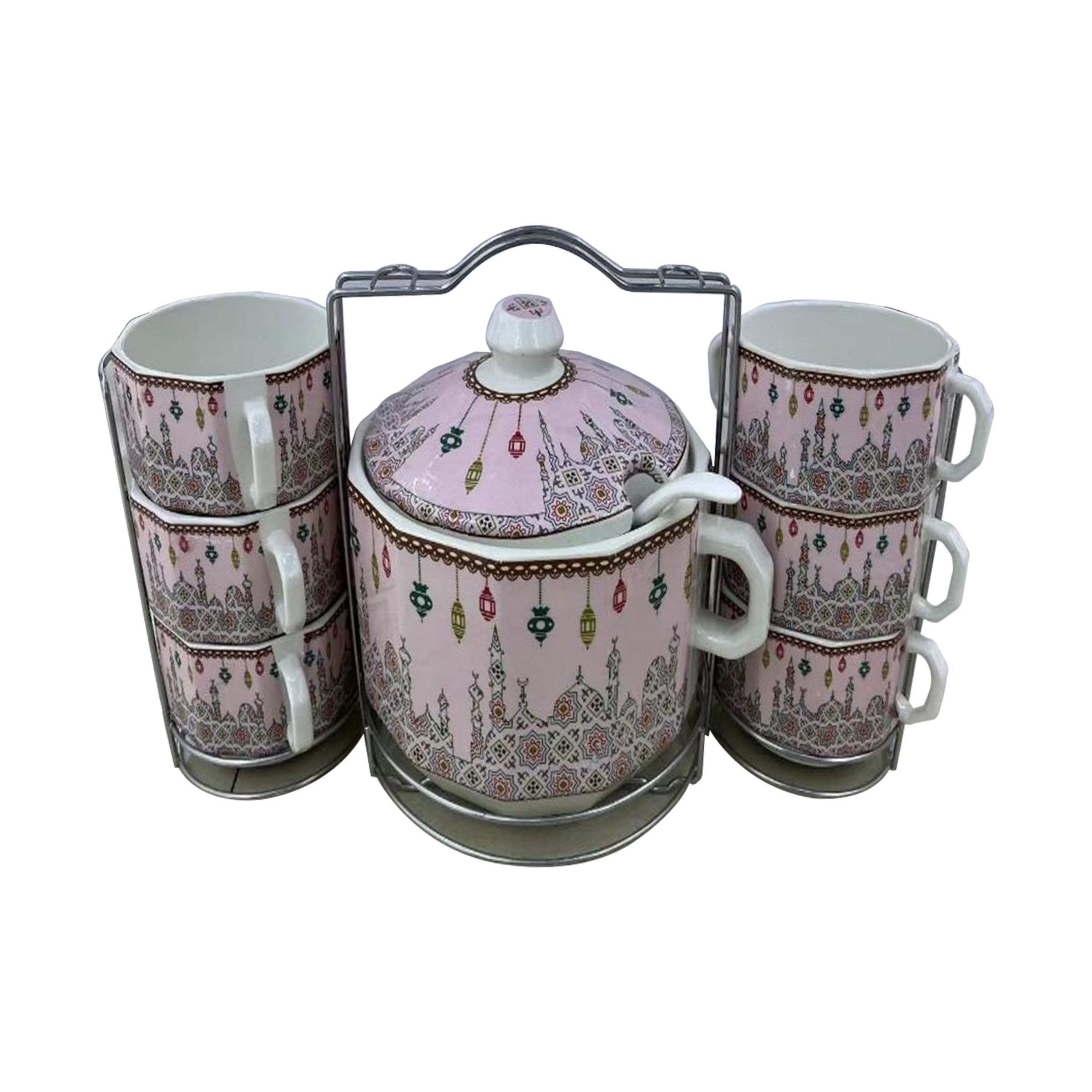 • Ceramic Pot And Soup Cup Set 6Pcs Cup+ 1Pc Pot 1523-4